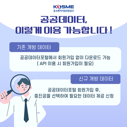 중소벤처기업진흥공단에서는 공공데이터를 쉽게 이용할 수 있도록 단어형식으로 데이터를 분류 하였습니다.